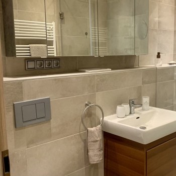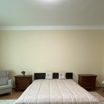 The total surface is 90 sqm, it has 2 bedrooms, a bathroom with shower, fully mechanized kitchen, and you can enter to the balcony from the living room. The view is beautiful, you can see the Square, and the Danube as well.