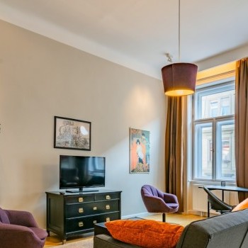 We offer for rent a 72 sqm furnished, tastefully decorated apartment in the 6th district in Felső Erdősor street. The property is located on the top 3rd floor of the building, no elevator.